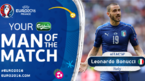 [OSEN=이균재 기자] 이탈리아의 중앙 수비수 레오나르도 보누치(유벤투스)가 스페인과 유로 2016 MOM(경기 최우수선수)으로 선정됐다.이탈리아가 유로 2012 결승서 0-4 대패를 안겼던 스페인에 설욕하며 유로 2016 8강에 안착했다. 이