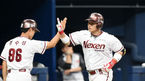 [OSEN=고척, 민경훈 기자] 29일 오후 서울 고척스카이돔에서 ‘2016 타이어뱅크 KBO리그’ 넥센 히어로즈와 한화 이글스의 경기가 열렸다.1회말 2사 넥센 윤석민이 좌월 솔로 홈런을 날린 후 덕아웃에서 동료들과 하이파이브를