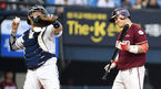 [OSEN=잠실, 최규한 기자] 7일 오후 서울 잠실야구장에서 '2016 타이어뱅크 KBO 리그' 두산 베어스와 넥센 히어로즈의 경기가 열렸다.5회초 1사 주자없는 상황 박동원이 두산 선발 유희관의 공에서 삼진을 당한 뒤 아쉬워하고 있다. /d
