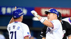[OSEN=대구, 지형준 기자] 7일 오후 대구삼성라이온즈파크에서 열린 '2016 타이어뱅크 KBO 리그' 삼성 라이온즈와 LG 트윈스의 경기, 2회말 2사 1루에서 삼성 우동균이 투런포를 날리고 김재걸 코치와 하이파이브를 하고 있다. /jpnews@o