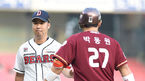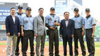 [OSEN=잠실, 최규한 기자] 7일 오후 서울 잠실야구장에서 '2016 타이어뱅크 KBO 리그' 두산 베어스와 넥센 히어로즈의 경기가 열렸다.경기 시작을 앞두고 1,500 경기 출장 기록을 세운 이민호 심판(가운데)이 한대화 경기기록관에게 트