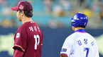 [OSEN=대구, 백승철 기자] 29일 오후 대구 삼성 라이온즈 파크에서 열린 '2016 타이어뱅크 KBO 리그' 삼성 라이온즈와 넥센 히어로즈의 경기 7회말 1사 만루 이보근과 박동원이 이야기를 나누고 있다. / baik@osen.co.kr