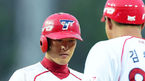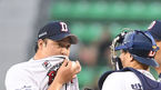 [OSEN=잠실, 곽영래 기자] 29일 오후 서울시 잠실야구장에서 '2016 타이어뱅크 KBO 리그' 두산 베어스와 한화 이글스의 경기가 열렸다.1회초 1사 1루 두산 안규영이 박세혁과 이야기를 나누고 있다./ youngrae@osen.co.kr