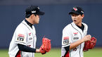 [OSEN=수원, 이동해 기자] 29일 수원 케이티 위즈파크에서 열린 '2016 타이어뱅크 KBO리그' kt wiz와 롯데 자이언츠의 경기 1회초 kt 정대현이 삼자범퇴로 이닝을 종료, 박기혁과 이야기하며 더그아웃으로 향하고 있다. /eastsea@osen.co.kr