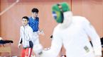 [OSEN=이대선 기자] 2일 오후(한국시각)브라질 리우데자네이루의 리우센터 파빌리온에서 대한민국 복싱대표팀의 함상명이 펜싱 훈련장을 찾아 펜싱 체험을 한 후 이동하고 있다./sunday@osen.co.kr사진=한국온라인사진기자협회 공동