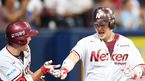 [OSEN=고척, 민경훈 기자] 11일 오후 서울 고척스카이돔에서 ‘2016 타이어뱅크 KBO리그’ 넥센 히어로즈와 KIA 타이거즈의 경기가 열렸다.8회말 1사 넥센 박동원이 좌월 동점 솔로홈런을 날린 후 덕아웃에서 염경엽 감독과 하