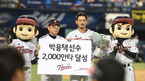 [OSEN=잠실, 지형준 기자] LG 트윈스 프랜차이즈 스타 박용택(37)이 KBO리그 통산 6번째 2000안타 달성자가 됐다.박용택은 11일 잠실 NC전에 3번 지명타자로 선발 출장, 3회말 두 번째 타석에서 우전 적시타, 7회말 네 번째 타석에서 우