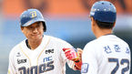 [OSEN=창원, 최규한 기자] 29일 오후 경남 마산야구장에서 '2016 타이어뱅크 KBO 리그' NC 다이노스와 삼성 라이온즈의 더블헤더 1차전이 열렸다.4회말 1사 만루 상황 NC 김태군이 달아나는 1타점 적시타를 날리고 전준호 코치와 인사