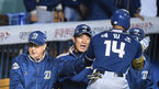 [OSEN=잠실, 지형준 기자] 25일 오후 서울 잠실야구장에서 열린 '2016 타이어뱅크 KBO 리그' 플레이오프 4차전 NC 다이노스와 LG 트윈스의 경기, 4회초 1사에서 NC 테임즈가 동점 솔로포를 날리고 김경문 감독과 기뻐하고 있다./ jpnews@osen