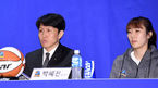 [OSEN=양재,이대선 기자] 25일 오전 서울 양재동 더케이호텔 크리스탈볼륨에서 '삼성생명 2016~2017 여자프로농구 타이틀스폰서 조인식 및 미디어데이'가 열렸다.아산 우리은행 위성우 감독과 박혜진이 인사를 하고 있다. /sunday@osen.c