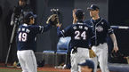 [OSEN=창원, 이대선 기자] 1일 경상남도 창원 마산야구장에서 열린 '2016 타이어뱅크 KBO 리그' 한국시리즈 3차전 두산 베어스와 NC 다이노스의 경기, 5회초 무사에서 두산 김재환이 솔로포를 치고 더그아웃에서 오재일과 환호하고