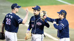 [OSEN=마산, 지형준 기자] 1일 오후 창원 마산야구장에서 열린 '2016 타이어뱅크 KBO 리그' 한국시리즈 3차전 NC 다이노스와 두산 베어스의 경기, 5회말 수비를 마치고 두산 보우덴이 오재원, 민병헌과 하이파이브를 하고 있다./ jpnews@
