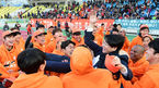 [OSEN=성남, 백승철 기자] 20일 오후 경기도 성남시 탄천종합운동장에서 열린 '현대오일뱅크 K리그 클래식 2016' 성남 FC와 강원 FC의 승강 플레이오프 경기 종료 후 강원 선수들이 팬들 앞에서 환호하고 있다.강원FC는 이날 승강플레