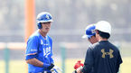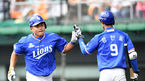 [OSEN=오키나와(일본), 이대선 기자] 18일 일본 오키나와 셀룰러스타이움에서 삼성 라이온즈와 요미우리 자이언츠의 경기가 진행됐다.4회초 삼성 구자욱이 적시타를 치고 김재걸 코치와 하이파이브를 하고 있다. /sunday@osen.co.kr