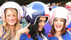 [OSEN=알링턴(미국 텍사스),박준형 기자] 3일 오후(현지시간) 미국 텍사스주 알링턴 글로브 라이브 파크에서 열린 2017 메이저리그(MLB) 텍사스 레인저스와 클리블랜드 인디언스의 개막전, 텍사스 야구팬들이 카메라를 향해 포즈를
