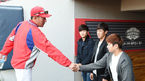 [OSEN=광주, 민경훈 기자] 7일 오후 광주 기아챔피언스 필드에서 '2017 타이어뱅크 KBO 리그' KIA 타이거즈와 한화 이글스의 경기가 열릴 예정인 가운데 경기 전 SK에서 KIA로 트레이드 된 김민식 이명기 최정민이 KIA 덕아웃에서 김기태
