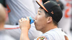 [OSEN=신시내티(미국 오하이오주),박준형 기자] 20일(한국시간) 미국 오하이오주 신시내티 그레이트 아메리칸 볼파크에서 열린 2017 메이저리그(MLB) 신시내티 레즈와 볼티모어 오리올스의 경기,김현수가 더그아웃에서 물을 마시고