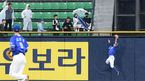 [OSEN=잠실, 최규한 기자] 6일 오후 서울 잠실야구장에서 '2017 타이어뱅크 KBO 리그' 두산 베어스와 삼성 라이온즈의 경기가 열렸다.9회말 1사 주자없는 상황 두산 오재일의 타구를 삼성 중견수 박해민이 펜스 플레이를 펼치며 잡아