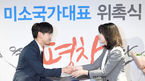 [OSEN=곽영래 기자] 가수 에릭남이 4일 오전 서울 중구 티마크그랜드호텔에서 진행된 2017 명예미소 국가대표 위촉식 참석해 한경아 한국방문위원회 사무국장으로부터 위촉패를 받고 있다. / youngrae@osen.co.kr