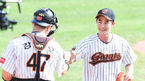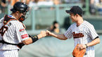 [OSEN=부산, 최규한 기자] 배우 배정남이 9일 오후 부산 사직야구장에서 열린 '2017 타이어뱅크 KBO리그' 포스트시즌 준플레이오프 2차전 롯데 자이언츠와 NC 다이노스의 경기 시구자로 나서 포수 강민호와 인사를 나누고 있다. /dream