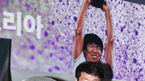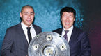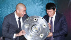 [OSEN=박준형 기자] 2일 오전 서울 용산구 그랜드하얏트 호텔에서 진행된 '분데스리가 레전드투어 IN 코리아' 공식기자회견에서 차범근과 차두리가 분데스리가 우승트로피 마이스터샬레 앞에서 포즈를 취하고 있다.분데스리가 레