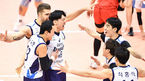 [OSEN=수원,박준형 기자] 27일 오후 경기도 수원시 수원실내체육관에서 열린 도드람 2017~2018시즌 V리그 남자부 4라운드 한국전력과 우리카드의 경기, 1세트 승리한 우리카드 선수들이 기뻐하고 있다./ soul1014@osen.co.kr