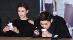 [OSEN=박준형 기자] 28일 오후 서울 건대입구 롯데시네마에서 진행된 영화 '스타박'스 다방' 언론시사회에서 백성현과 이상아가 커피를 마시고 있다./ soul1014@osen.co.kr