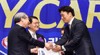 [OSEN=지형준 기자] 16일 오전 서울 장충동 신라호텔에서 열린 KBO리그 타이틀스폰서 조인식에서 KBO 정운찬 총재, 신한은행 위성호 은행장이 홍보대사 이승엽과 인사를 나누고 있다.KBO는 2018~2020 KBO 리그 타이틀 스폰서를 신한은행