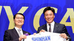 [OSEN=지형준 기자] 16일 오전 서울 장충동 신라호텔에서 열린 KBO리그 타이틀스폰서 조인식에서 신한은행 위성호 은행장과 홍보대사 이승엽이 포토타임을 하고 있다.KBO는 2018~2020 KBO 리그 타이틀 스폰서를 신한은행으로 확정했다.