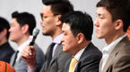 [OSEN=지형준 기자] 15일 오후 서울 청담동 리베라호텔에서 열린 2017-2018 정관장 프로농구 플레이오프 미디어데이, DB 김주성이 이상범 감독이 건강상의 문제로 불참하며 대신 참석한 가운데 KCC 하승진이 김주성을 감독대행으로