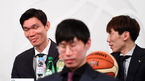 [OSEN=지형준 기자] 15일 오후 서울 청담동 리베라호텔에서 열린 2017-2018 정관장 프로농구 플레이오프 미디어데이, 전자랜드 유도훈 감독이 KCC 하승진의 답변에 귀기울이고 있다. /jpnews@osen.co.kr