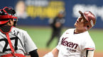 [OSEN=고척, 지형준 기자] 21일 오후 서울 고척스카이돔에서 열린 2018 신한은행 MYCAR KBO리그 시범경기 넥센 히어로즈와 LG 트윈스의 경기. 5회말 2사에서 넥센 박동원이 삼진에 아쉬워하고 있다. /jpnews@osen.co.kr