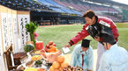 [OSEN=잠실, 지형준 기자] 23일 오전 서울 잠실구장에서 LG 트윈스의 2018시즌 무사안녕 및 승리 기원제가 열렸다. LG 진해수가 마운드에 고수레를 하고 있다./jpnews@osen.co.kr