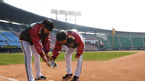[OSEN=잠실, 지형준 기자] 23일 오전 서울 잠실구장에서 LG 트윈스의 2018시즌 무사안녕 및 승리 기원제가 열렸다. LG 박종호 코치와 양석환이 1루 베이스에 고수레를 하고 있다./jpnews@osen.co.kr