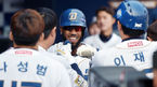 [OSEN=창원, 이동해 기자] 24일 오후 경남 창원 마산야구장에서 열린 '신한은행 MYCAR KBO리그' 개막전 NC 다이노스와 LG 트윈스의 경기, 9회초 대타 임훈이 솔로홈런을 때린 후 더그아웃에서 팀원들에게 축하를 받고 있다./ eastsea@osen.co