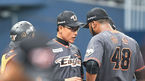 [OSEN=고척,박준형 기자]24일 서울 고척스카이돔에서 진행된 '2018 신한은행 MYCAR KBO리그' 넥센 히어로즈와 한화 이글스의 개막전 경기, 4회말 역전 허용한 한화 샘슨 선발투수가 송진우 투수 코치와 이야기를 나누고 있다. / soul1014@o