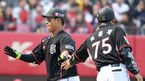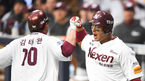 [OSEN=고척,박준형 기자]24일 서울 고척스카이돔에서 진행된 '2018 신한은행 MYCAR KBO리그' 넥센 히어로즈와 한화 이글스의 개막전 경기, 3회말 2사 넥센 김태완이 솔로홈런을 날린뒤 박병호와 하이파이브를 하고 있다. / soul1014@osen.co.