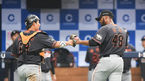 [OSEN=고척,박준형 기자]24일 서울 고척스카이돔에서 진행된 '2018 신한은행 MYCAR KBO리그' 넥센 히어로즈와 한화 이글스의 개막전 경기,2회말 이닝종료 후 한화 선발투수 샘슨과 최재훈 포수가 하이파이브를 하며 더그아웃으로 들