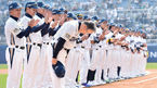 [OSEN=창원, 이동해 기자] 24일 오후 경남 창원 마산야구장에서 열린 '신한은행 MYCAR KBO리그' 개막전 NC 다이노스와 LG 트윈스의 경기 시작 전 LG 선수들이 도열해 팬들에게 인사를 하고 있다. 팬들에게 인사 올리는 류중일 감독. / east