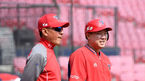 [OSEN=창원, 이동해 기자] 24일 경남 창원 마산야구장에서 열릴 예정인 '신한은행 MYCAR KBO리그' 개막전 NC 다이노스와 LG 트윈스의 경기에 앞서 NC 김경문 감독-LG 류중일 감독이 인사를 나누고 있다. / eastsea@osen.co.kr