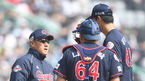 [OSEN=인천, 이대선 기자] 25일 오후 서울 인천 SK행복드림구장에서 '2018 신한은행 MY CAR KBO 리그' SK 와이번스와 롯데 자이언츠의 경기가 열렸다.2회초 1사 만루에서 마운드를 방문한 롯데 조원우 감독이 나원탁 윤성빈과 이야기를