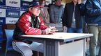 [OSEN=창원, 이동해 기자] 25일 경남 창원 마산야구장에서 열릴 예정인 '신한은행 MYCAR KBO리그' NC 다이노스와 LG 트윈스의 경기에 앞서 NC 유영준 단장에게 승리 기념공을 전달 받은 24일(어제) 승리투수 왕웨이중이 미소 짓고 있다.