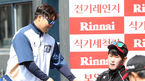 [OSEN=창원, 이동해 기자] 25일 경남 창원 마산야구장에서 열릴 예정인 '신한은행 MYCAR KBO리그' NC 다이노스와 LG 트윈스의 경기에 앞서 NC 박석민-LG 정주현이 이야기 나누고 있다. / eastsea@osen.co.kr