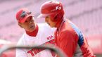 [OSEN=광주, 최규한 기자] 25일 광주-기아 챔피언스필드에서 열리는 '2018 신한은행 MYCAR KBO리그' KIA 타이거즈와 kt 위즈의 경기를 앞두고, KIA 쇼다 코우조 코치와 한승택이 타격 훈련을 하고 있다. /dreamer@osen.co.kr