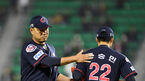 [OSEN=잠실, 지형준 기자] 29일 오후 서울 잠실야구장에서 열린 '2018 신한은행 MYCAR KBO리그' 두산 베어스와 롯데 자이언츠의 경기, 6회말 무사 1루에서 롯데 송승준이 강판되며 구승민을 격려하고 있다. /jpnews@osen.co.kr