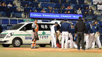 [OSEN=창원, 이대선 기자] 29일 오후 경남 창원 마산야구장에서 ‘2018 신한은행 MY CAR KBO리그’ NC와 한화의 경기가 열렸다.2회말 1사 1,3루에서 한화 김민우의 투구에 맞은 NC 손시헌이 구급차에 실리고 있다./sunday@osen.co.kr