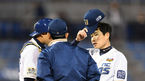 [OSEN=창원, 이대선 기자] 29일 오후 경남 창원 마산야구장에서 ‘2018 신한은행 MY CAR KBO리그’ NC와 한화의 경기가 열렸다.2회말 1사 1,3루에서 한화 김민우가 자신의 투구에 머리를 맞은 NC 손시헌을 걱정스럽게 바라보고 있