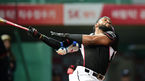 [OSEN=인천, 민경훈 기자] 29일 오후 서울 인천 SK행복드림구장에서 '2018 신한은행 MY CAR KBO 리그' SK 와이번스와 kt 위즈의 경기가 열렸다.3회초 kt 선두타자 로하스가 파울타구를 날리며 헬멧이 벗겨지고 있다. / rumi@osen.co.kr