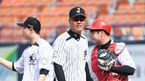 [OSEN=목동,박준형 기자] 29일 서울 목동구장에서 열린 '2018 KIBA(한국독립야구) 드림리그' 서울 저니맨 외인구단과 연천 미라클의 개막전, 3회초 김상현 저니맨 감독이 마운드에 올라 이석재 투수와 이야기를 나누고 있다. / soul1014@