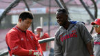 [OSEN=부산, 이대선 기자] 30일 오후 부산 사직야구장에서 열릴 ‘2018 신한은행 MY CAR KBO리그’ 롯데와 NC의 경기에 앞서 롯데 채태인과 이병규가 번트 연습을 하고 있다./sunday@osen.co.kr